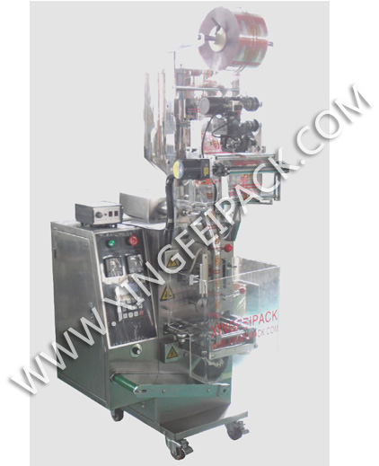 包裝機(jī)產(chǎn)品廣泛使用于食品、醫(yī)藥、保健、化工、化妝品等行業(yè)的顆料狀物品、粉末狀物品、液體半流體物料計量包裝的小袋包裝機(jī)。