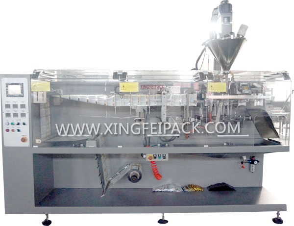 全自動水平式包裝機是一款水平式全自動卷膜成型袋包裝機,是集制袋、計量、灌裝、封口于一體的全新自動包裝機。以熱封性復合膜材料為外包裝,配置各種不同的灌裝頭,可對粉狀、顆粒、液體、粘稠體等不同的物料進行三邊封或四邊封包裝。