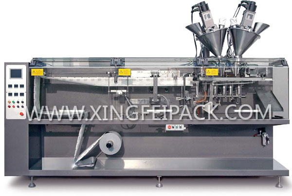 全自動水平式包裝機(jī)是一款水平式全自動卷膜成型袋包裝機(jī),是集制袋、計量、灌裝、封口于一體的全新自動包裝機(jī)。以熱封性復(fù)合膜材料為外包裝,配置各種不同的灌裝頭,可對粉狀、顆粒、液體、粘稠體等不同的物料進(jìn)行三邊封或四邊封包裝。